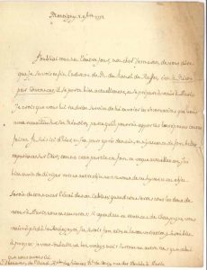 Il lui donne l’adresse de « M. du Hamel de Ruffec » [Jean-Pierre-François Guillot-Duhamel (1730-1816) initiateur de l’art des mines en France], à Nicorps par Coutances : « il se porte bien actuellement, et se prépare à venir à Paris. Je crois que vous lui rendriez service de lui envoier les observations que vous avez recueillies sur son mémoire, parce qu’il pourroit apporter les réponses toutes faites. Je suis ici d’hier, et j’en pars après demain ; on m’y annonce de fort belles expériences sur l’air ; comme cette partie est fort en vogue actuellement, j’ai bien envie de diriger vers un autre objet mes travaux de cet hyver, et cet objet seroit de commencer l’Essai de mon cabinet ; quand nous serons tous les deux de retour à Paris, nous en causerons ; si cependant en venant de Champagne, vous veniez à pied à la Rocheguyon, j’en serois fort aise et la conversation y seroit bien à propos »…