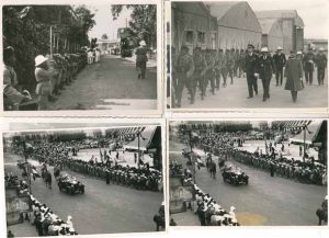 Ensemble de clichés professionnels : revues, parades et cérémonies militaires, dont le cortège officiel de l’arrivée du gouverneur général Cayla à Tananarive, et la réception du commandant supérieur des troupes du Groupe de l’Afrique Orientale Française, le général Roucaud ; cérémonies à l’aérodrome, dont un cliché de l’orchestre à majorité indigène ; fête des colons, travaux sur une ligne ferroviaire ; photo de classe de 10e chez les Pères jésuites d’Amparibe à Tananarive… Plus 3 petits clichés d’amateur, dont un représentant un Noir en uniforme tenant un bébé blanc.