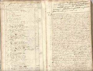 Livre de raison d’un citoyen de Pont-Saint-Pierre et administrateur de la fonderie de Romilly. état nominatif de personnes mises en arrestation par ordre du comité de surveillance ; état nominatif de détenus dans la maison des ci-devant Ursulines, avec indication de leurs professions : curés, chanoine, juge, procureurs, administrateurs du département, hommes de loi et d’affaires, etc. ; d’autres inscriptions d’entrées de détenus, 1793-1794 (le rédacteur semble avoir été un temps concierge de la prison). Liste de décrets relatifs aux dettes, rentes, etc. États de travaux journaliers et d’opérations de la fonderie des Ponts ; inventaire de meubles et effets appartenant aux fonderies de Romilly, et nantissement de ménage de J.-B. Gosselin, commis des bureaux, 1802. Modèles de procès-verbal de garde-champêtre, de reconnaissance de dette, de bail, de procuration, d’assignation, de brevet d’apprentissage et de contrats (dont contrat de mariage), etc. Tableau des citoyens composant la 4e compagnie de la Garde nationale de Pont-Saint-Pierre, 1798 ou 1799. Notes de lecture sur Bonaparte, la Révolution, Louis XVII. Comptes de rentes et frais divers. Remèdes et recettes pour des maux de dents, de tête et de jambe, la rage, la rétention d’urine, les rhumatismes, la jaunisse, la gale, un flux de sang, etc. Mémoire de prises faites en veillant à la conservation d’une propriété au Plessis-Grohan : vaches, bourriques, chevaux, lièvres. Etc.