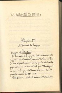 PERCHE. Manuscrit autographe signé par Maurice Leroux, La Baronnie de Longny et ses Seigneurs ; un volume in-8 de 260 pages, reliure demi- basane rouge.