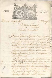 Documents administratifs et militaires, émanant de ministres, des conseils d’administration militaires, du Directoire exécutif, du conseil de santé militaire près le département de la Guerre, de soldats et officiers... Signatures du général Pietro Teulié, ministre de la Guerre ; Ferdinando Marescalchi, ministre des Relations extérieures de la République italienne ; Biga, commandant de la Marine, constructeur en chef naval ; Malavasi et Dalbuono, capitaines de la 4e légion cisalpine ; Caracciolo, chef de brigade commandant le 1er régiment de chasseurs à cheval… 10 belles vignettes gravées, dont une aux médaillons de Marcus Brutus et Scevola.