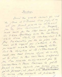 22 avril 1955, [à Mme Billon]. Envoi de « quelques pages manuscrites » pour une exposition, « les seules que j’ai pu trouver, car je détruis toujours mes manuscrits dès qu’ils sont dactylographiés »… 29 décembre 1955, [à M. Billon]. Il ne connaît aucun livre anglais ou américain qui mérite la traduction, mais prend note de son désir. Compliments sur la librairie Notre Temps où il voit Mme Billon, « toujours si aimable et accueillante »… 11 décembre 1964. « La citation donnée par le Professeur Bounoure n’est pas tout à fait exacte. Ce sont, à mon avis, les explications transformistes qui sont “des contes de fées pour grandes personnes”. Quant à l’évolution elle-même, je ne pense pas qu’on puisse la mettre en doute. Non seulement est elle quasiment démontrée […] mais on ne peut pas concevoir d’autre explication rationnelle de la genèse du monde vivant »… Etc. Pasteur : hommage au « génie créateur » et à « la primauté morale » de cet homme d’élite… Fragment de conférence sur les films scientifiques, notamment ceux de Jean Painlevé… Fragment sur l’histoire de la médecine (Molière, Riolan)… Fragments parlant du biologiste Eugène Bataillon, du zoologiste Lucien Cuénot, du « grand médecin » Charles Nicolle et de Georges Duhamel…