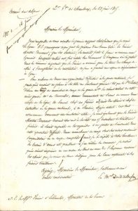 SUCHET Louis (1770-1826) maréchal, duc d’Albufera. L.S., Q.G. de Chambéry 13 juin 1815, au maréchal Davout ministre de la Guerre ; 1 page in-fol.