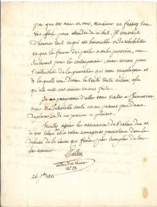 Quelques jours avant sa mort (16 novembre). Il lui adresse une notice pour la Biographie des contemporains. « J’ai vu avec plaisir que cette Biographie devoit être redigée par des amis de la liberté. Tous les ouvrages de cette nature ont jusqu’à present été le depot de toutes les calomnies, de toutes les passions haineuses des ennemis de la Revolution ; ils ont laissé des impressions fausses sur les hommes et même sur les choses ; il est donc bien à desirer que celui-ci les rectifie et que la plus exacte impartialité y preside ; ce sera un veritable service rendu à la cause de la liberté […]. Il convient d’honorer tout ce qui est honorable et de rehabiliter ce que la fureur des partis a voulu proscrire »…