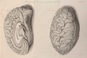 4 planches gravées sur cuivre, dont 3 " portraits d'un cerveau ", toutes reliées à la fin du premier tome, et 5 tableaux dépliants comptant pour 4 (le tableau 3 est en deux parties). Nouvelle édition de cet ouvrage qui fut publié pour la première fois en 1816. La physiologie moderne trouve ici l'un de ses fondements. François Magendie (1783-1855) fut le premier à faire la distinction expérimentale des nerfs moteurs et des nerfs sensitifs. Ses expériences sur les animaux renouvelèrent l'approche de la physiologie du cœur, du système nerveux, de la digestion, etc. Le tome 1 contient des notions préliminaires (l'histoire des 5 sens, celle de l'intelligence, de l'instinct, des passions, etc). Le tome 2 contient l'histoire des fonctions nutritives et de la génération.