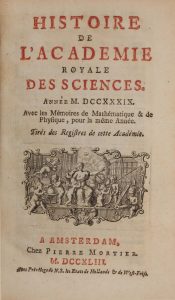 Titres en rouge et noir, deux sont ornés d'une vignette gravée en taille-douce. Histoire et Mémoires de l'Académie royale des sciences pour les années 1739 et 1740 : réédition amstellodamoise au format in-12 donnée par le libraire Pierre Mortier (170 volumes parus entre 1732 et 1790).