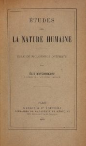 METCHNIKOFF (Élie). Etudes sur la nature humaine. Essai de philosophie optimiste. Paris, Masson, 1903. In-8, [6]-II-399 pp., demi-maroquin cerise de l'époque, dos à faux nerfs, couvertures conservées. Figures dans le texte. Édition originale....