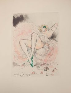 ICART. ANDRÉA DE NERCIAT (André-Robert). Félicia ou mes fredaines. Illustré de vingt eaux fortes originales en couleurs par Louis Icart. Paris, Georges Guillot, [1947]. In-4, [2]-186-[1] pp., [1] f. bl. et [1] f. de justification, en feuilles,...