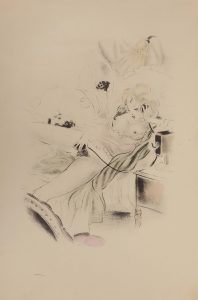 [LOUYS (Pierre)]. Scènes de péripatéticiennes [Titre en grec] (Douze douzains de dialogues ou petites scènes amoureuses). 1903 (c'est-à dire vers 1937). In-4, [1] ff. de titre avec gravure, 132-[3] pages, 11 planches volantes en couleurs,...