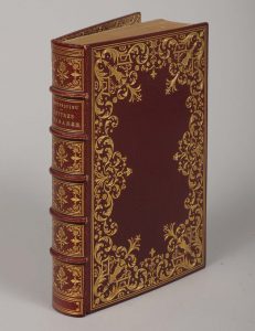sur les deux plats, dos à nerfs également orné de motifs dorés, tranches dorées, dentelles intérieures (infimes frottements aux nerfs et à la tête inférieure).