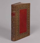 large dentelle dorée composée de feuillages, fleurs et pampres encadrant un rectangle central de maroquin rouge serti d'une fine roulette dorée, roulette dorée aux coupes et bords des contreplats, doublure de soie rouge, tranches dorées sur marbrure (un coin émoussé).