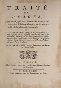 ALLEMAND. Traité des péages, dans lequel, après avoir démontré les avantages qui résulteraient de la suppression de ce droit, on donne un plan de liquidation et d'indemnité ; et Plan d'administration de la navigation intérieure, avec les...