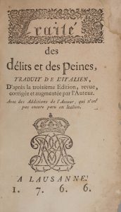 [BECCARIA (Cesare Bonesana de)]. Traité des délits et des peines. Traduit de l'italien, D'après la troisième édition, revue, corrigée et augmentée par l'auteur. Avec des additions de l'auteur, qui n'ont pas encore paru en italien. À Lausanne,...