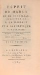 BÉRENGER (Laurent-Pierre). Esprit de Mably et de Condillac, relativement à la morale et à la politique. Grenoble-Paris, Le Jay, 1789. 2 vol. in-8, VIII-404 et [4]-192-260-[7] pp., avec deux portraits-frontispices, veau moucheté, dos lisses...