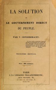 La première édition de ce manifeste socialiste est de 1850 : c'est un catéchisme sur les idées de liberté et d'égalité, impliquant la démocratie directe au sens rousseauiste du terme. Au départ disciple de Fourier, Prosper-Victor Considérant (1808-1893) fonda sa propre voie vers le socialisme en fondant le " mouvement sociétaire " dont le manifeste fut publié en 1841.