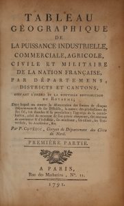 COUEDIC (P.). Tableau géographique de la puissance industrielle, commerciale, agricole, civile et militaire de la nation française, par départemens, districts et cantons, suivant l'ordre de la nouvelle distribution du royaume. Paris, 1791. Deux...
