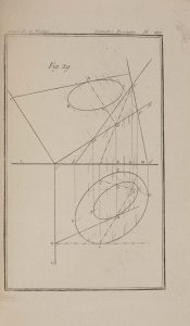 planches dont 28 gravées au trait (mathématiques, géométrie), et 1 tableau dépliant, veau fauve marbré, dos lisses ornés alternativement de vases et semis géométriques dorés, encadrement de simple filet à froid sur les plats, simple filet doré sur les coupes, tranches marbrées (rel. de l'époque) (qqs épidermures, rares trous de vers).