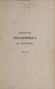 ENFANTIN (Barthélémy-Prosper). Correspondance philosophique et religieuse, 1843-1845. Paris, Typographie Lacrampe fils et Cie, 1847. Grand in-8, 217 pp., demi-basane verte, dos lisse, filets à froid (rel. de l'époque) (dos frotté, rousseurs...