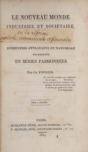 FOURIER (C.). Le Nouveau monde industriel et sociétaire, ou invention du procédé d'industrie attrayante et naturelle distribuée en séries passionnées. Paris, Bossange Père, Mongie Aîné, 1829-1830. 2 vol. in-8, XVI-576 pp. et paginé 577 à...