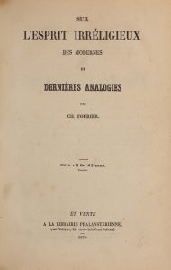 posthume de ces deux opuscules qui font partie des Manuscrits de Fourier (1772-1837) publiés de 1850 à 1858 par la Librairie phalantérienne : le premier est particulièrement éclairant sur les fondements en fait religieux de son socialisme utopique.