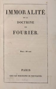 En revanche, ce qui est sûr, c'est que la théorie semi-libertarienne des passions développée par Fourier se prêtait à toutes sortes de malentendus et constituait un angle d'attaque commode pour des critiques qui refusaient ensuite d'examiner l'aspect proprement social des idées de l'auteur, selon un procédé de discréditation bien classique. L'auteur anonyme semble d'abord abonder en ce sens pour démonter point par point les reproches d'" immoralité " concernant les passions et les relations entre les sexes.