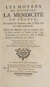 [MALVAUX (J. de)]. Les Moyens de détruire la mendicité en France, en rendant les mendians utiles à l'État sans les rendre malheureux ; extraits des Mémoires qui ont concouru pour le prix accordé en l'année 1777, par l'Académie des Sciences,...