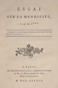 plus rares parus sur ce sujet au moment où la situation des indigents et des mendiants occupa plusieurs débats publics, qui devaient bouleverser l'organisation charitable de la France.