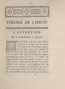 [MIRABEAU (Victor Riqueti de)]. Théorie de l'impôt. S.l., s.n., 1760. In-4, VIII-336 pp., veau fauve, dos à nerfs orné, pièce de titre de maroquin rouge, roulette dorée sur les coupes, tranches rouges, triple filets à froid sur les plats (rel....