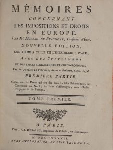 MOREAU DE BEAUMONT (Jean-Louis). Mémoires concernant les impositions et droits en Europe. Nouvelle édition, conforme à celle de l'Imprimerie Royale, avec des supplémens et des tables alphabétiques et chronologiques, par Me Poullin de Viéville...
