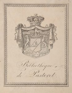 Précieux exemplaire du marquis Emmanuel-Claude-Joseph-Pierre de Pastoret (1756-1840), homme politique à la longévité exceptionnelle, un des rédacteurs de la Charte de 1814, alors vice-président de la Chambre des Pairs, avec vignette ex-libris contrecollée sur les premières gardes. La possession de l'ouvrage, très confidentiel, par le noble Pair est intéressante à plus d'un titre : comblé d'honneurs par la monarchie restaurée, Pastoret fut, avec sa femme, l'un des principaux organisateurs de l'assistance dans la France des années 1820-1830.
