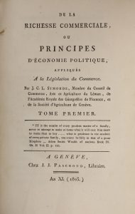 L'ouvrage fit au jeune Sismondi (1773-1842) un nom dans le cercle alors très étroit des théoriciens de l'économie. Se voulant un commentaire des idées de Smith, le texte le dépasse constamment, d'une part en recourant, quoique avec prudence, à des modèles mathématiques pour expliquer les phénomènes économiques (procédé repris de Canard, et qui voit là des applications précoces) ; d'autre part, en se focalisant sur les règles différentielles des échanges commerciaux, domaine où il manifeste également une vraie intuition dans sa théorie de la balance entre capital et biens manufacturés à faible coût.