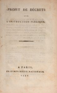 TALLEYRAND-PERIGORD (Charles-Maurice de). Projet de décrets sur l'instruction publique. Paris, Imprimerie Nationale, 1791, petit in-8, 100 pp., tranches rouges (dérelié). Proposé par Talleyrand, comme suite à son Rapport sur l'instruction...