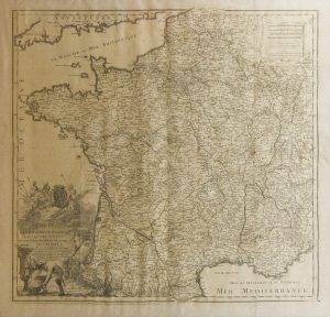 [CARTE] JAILLOT (Bernard-Antoine). Carte des Postes de France, dressée par Ordre et dédiée à Monseigneur Estienne François de Choiseul Duc de Sainville, Pair de France… Paris : Jaillot, 1764. — 652 x 680, encadrée. ►Belle et rare carte...
