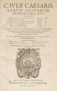 Première et importante édition publiée par l’antiquaire italien Jacopo Strada (1515-1588) des œuvres de Jules César et Aulus Hirtius, dédiée à Albert, comte palatin, Duc de Bavière et ses fils, Guillaume-Ferdinand et Ernest.