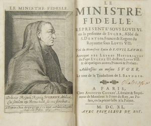 L’édition est illustrée d’un beau portrait de Suger gravé en taille-douce, placé en frontispice.