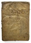 le premier plat, dos lisse, restes de liens de cuir (reliure de l’époque).