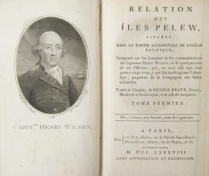 Édition originale de la traduction française de cette relation composée par l’écrivain et poète George Keate (1729-1797) à partir des journaux et des communications de Henry Wilson, capitaine de l’Antelope qui fit naufrage en août 1783 sur un récif près de Koror. Elle parut la même année que l’originale anglaise.