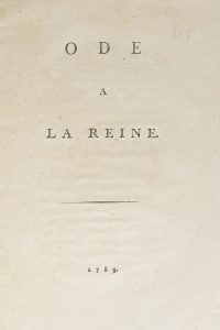 [MARIE-ANTOINETTE].Ode à la reine. S.l., 1789. — Plaquette in-8, 230 x 145 : 8 pp., couverture muette. Broché, non rogné, sous étui-boîte moderne à dos de maroquin rouge à coins. ►Édition très rare de ce virulent pamphlet dirigé contre...