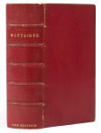 MONTAIGNE (Michel de). Essais de Michel, seigneur de Montaigne… Reueus & augmentez. Paris : Jean Richer, 1587. — In-12, 141 x 78 : (4 ff.), 1075 pp., (1 f. blanc). Maroquin rouge janséniste, dos à nerfs, dentelle dorée intérieure, tranches...