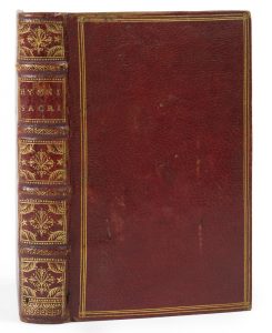 Très bel exemplaire réglé, en maroquin rouge de l’époque très bien conservé malgré deux petits trous de ver à un mors et au dernier caisson et un petit coup au second plat. Frottements sur le bord du premier nerf.