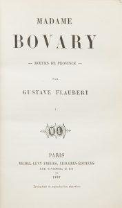 FLAUBERT (Gustave). Madame Bovary. Mœurs de province. Paris : Michel Lévy frères, 1857. — 2 volumes in-18,180 x 115 : (2 ff.), 232 pp., couverture imprimée ; (2 ff.), pp. (233)-490, couverture imprimée. Demi-chagrin aubergine, filet doré, dos...