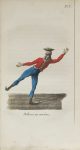 « Il apprendra dans ses principes à connaître tous les pas dont on se sert pour patiner ; à les enchaîner les uns avec les autres ; à les exécuter gracieusement, à se précautionner contre certains défauts que l’on pourrait contracter en les étudiant, et surtout à vaincre de bonne heure des difficultés qui paraissent insurmontables, et qui ne le sont, à vrai dire, que faute d’avoir un guide pour nous prouver le contraire en nous applanissant » (p. xxj). L’ouvrage se termine par un Vocabulaire des mots techniques de l’art du patin.L’édition est illustrée d’un frontispice gravé par Ambroise Tardieu et de 7 planches non signées représentant les principales attitudes du patineur.Exemplaire à toutes marges, l’un des rares connus avec les planches en couleurs.