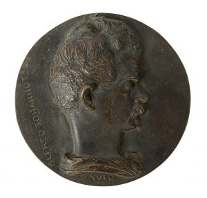 DAVID D’ANGERS (Pierre-Jean). Alfred Johannot Médaillon en bronze, daté 1831 Diamètre :15 cm Il fait partie de la série des hommes célèbres réalisée par l’artiste.