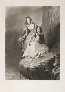 JOHANNOT (Tony). Minna et Brenda. 1834 Gravure à l’eau-forte et à l’aquatinte 37,3 x 45,8 cm D’après une composition tirée du roman historique de Walter Scott intitulé Le Pirate. Légère salissure sans gravité dans la marge.