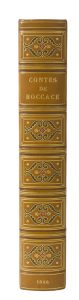 BOCCACE. Contes de Boccace ( Le Décaméron). Traduits de l’italien et précédés d’une notice historique par A. Barbier. Paris : Barbier, 1846. — Grand in-8, 280 x 184 : frontispice, (2 ff.), VIII, 505 pp., (1 f.), 31 planches, couverture...
