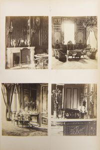Il a été enrichi de 96 PRÉCIEUSES PHOTOGRAPHIES ORIGINALES DU CHÂTEAU AVANT SON INCENDIE, réparties 4 par 4 sur 12 feuillets épais de papier bristol. Ces photographies, d’environ 85 x 75 millimètres, prises vers 1860, montrent aussi bien l’intérieur que l’extérieur de la demeure.