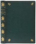 angles sur les plats, dos à nerfs orné du même emblème répété, dentelle dorée en encadrement à l’intérieur, doubles gardes, tête dorée, non rogné, couverture conservée (reliure de l’époque).