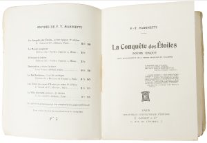 MARINETTI (Filippo Tommaso). La Conquête des Étoiles. Poème épique suivi des jugements de la presse française et italienne. Paris : E. Sansot &Cie, [1909]. — In-12, 190 x 151 : (4 ff.), 192, 60 pp., (2 ff. dernier blanc), couverture imprimée....