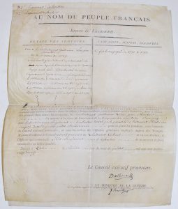 la griffe du marin Dalbarade qui avait remplacé Monge au Conseil exécutif puis à la Marine, et celle de Bouchotte fameux ministre de la Guerre de la Révolution.
