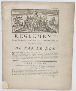 [TROUPES PROVINCIALES] - RÈGLEMENT CONCERNANT LES TROUPES PROVINCIALES. Du 1er mars 1778. Lille, N.J.B. Peterninck-Cramé, (1778), in-4. Broché.
